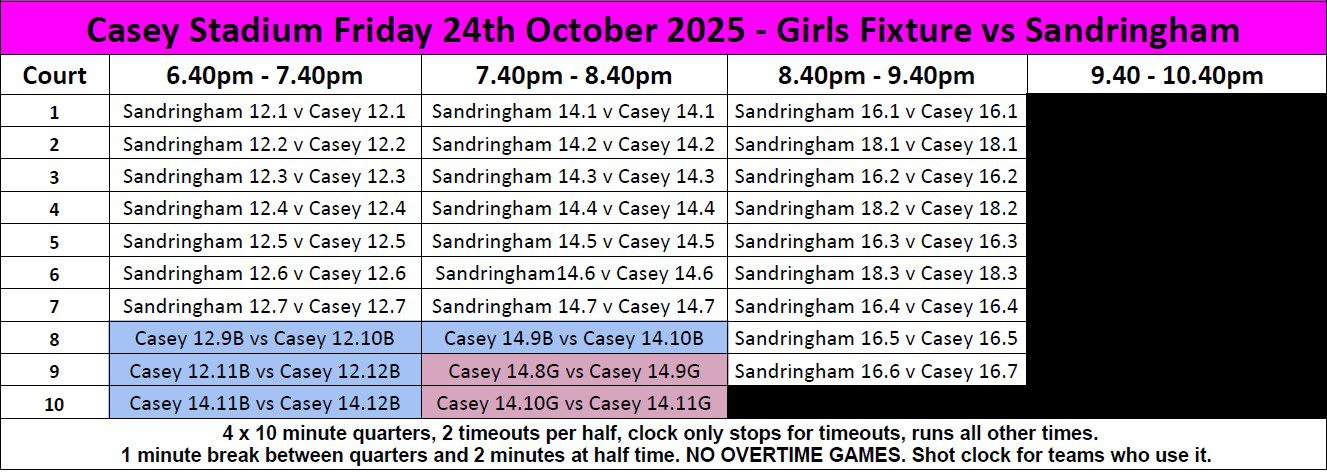 Please wear your Casey playing uniform (training uniform if you do not have a current playing uniform) for Fridays game.